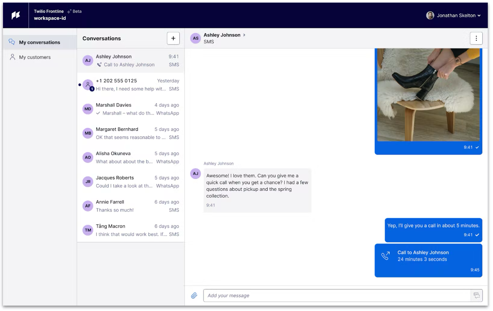 Twilio Frontline, the programmable sales engagement solution, is a mobile-first application for salespeople to build personalized digital relationships with clients over channels like SMS, WhatsApp, Voice, and Chat while maintaining security and compliance.