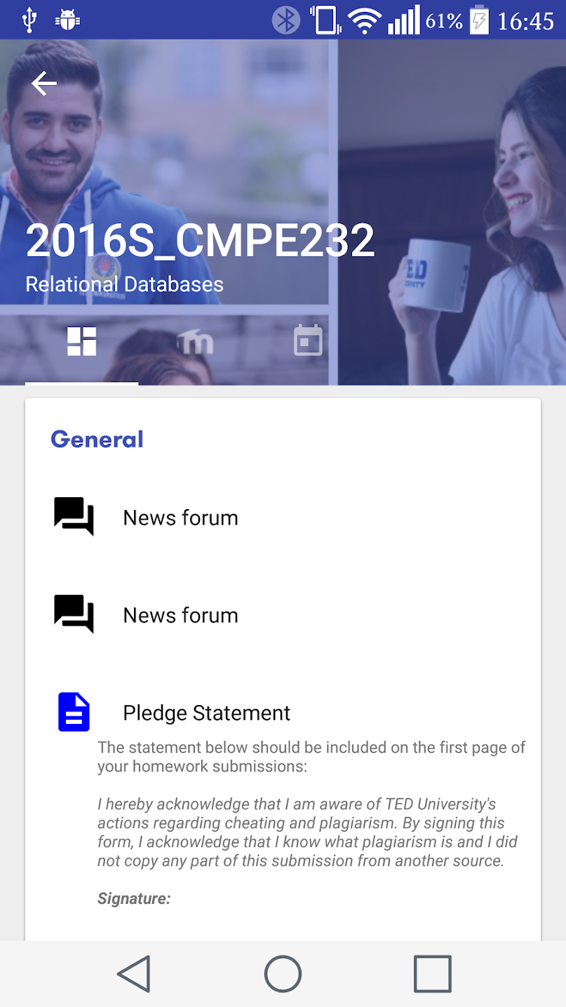 Offical Android app of TED University. It lets users follow news and announcements of the university and let students access Moodle content from their mobile devices.